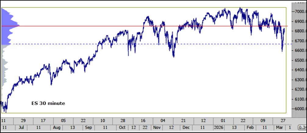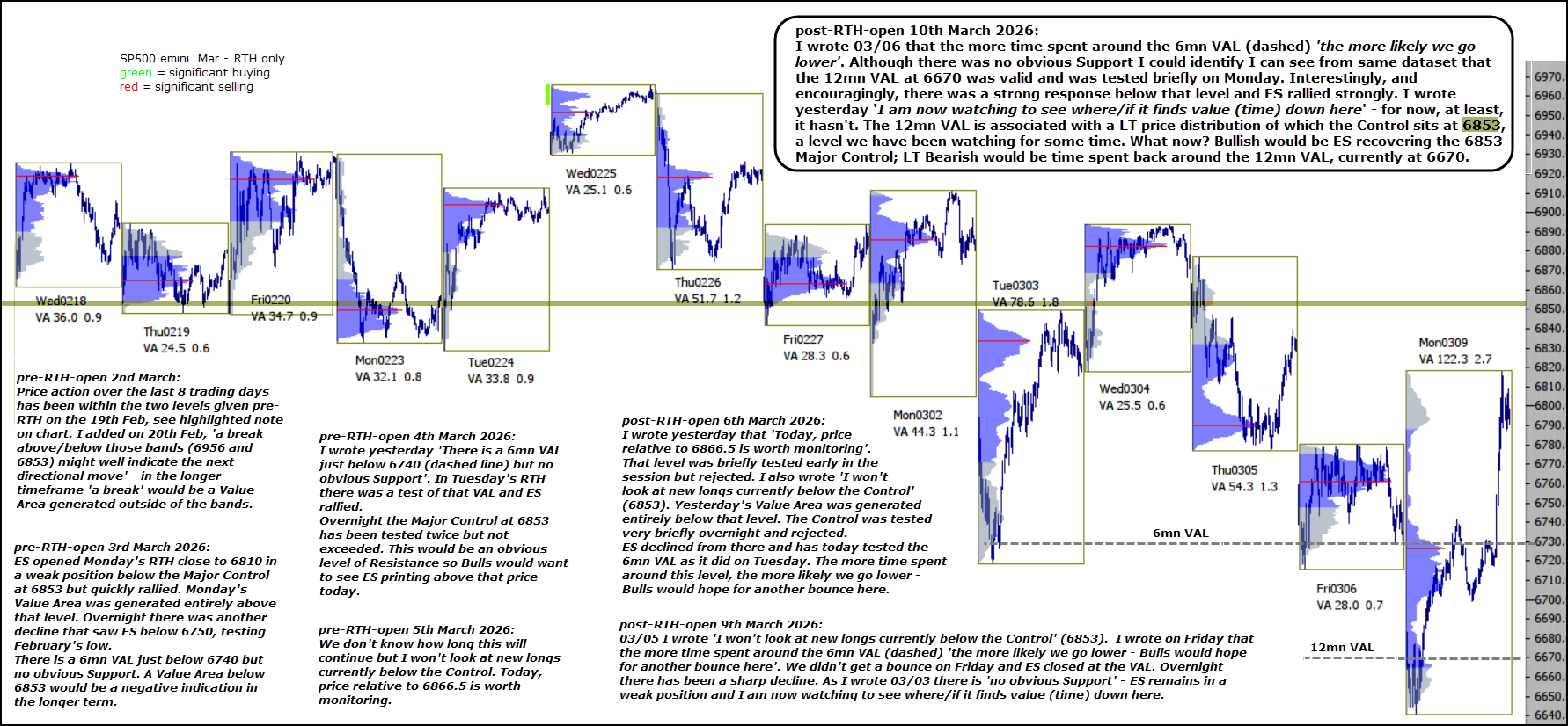 What now? Bullish would be ES recovering the 6853 Major Control; LT Bearish would be time spent back around the 12mn VAL, currently at 6670.