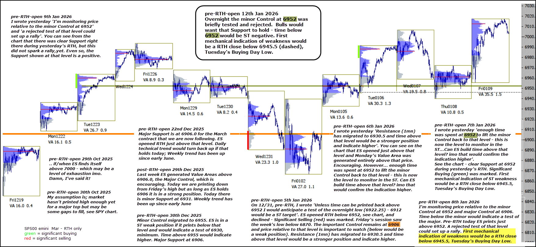 Overnight the minor Control at 6952 was briefly tested and rejected. Bulls would want that Support to hold – time below 6952 would be ST negative.