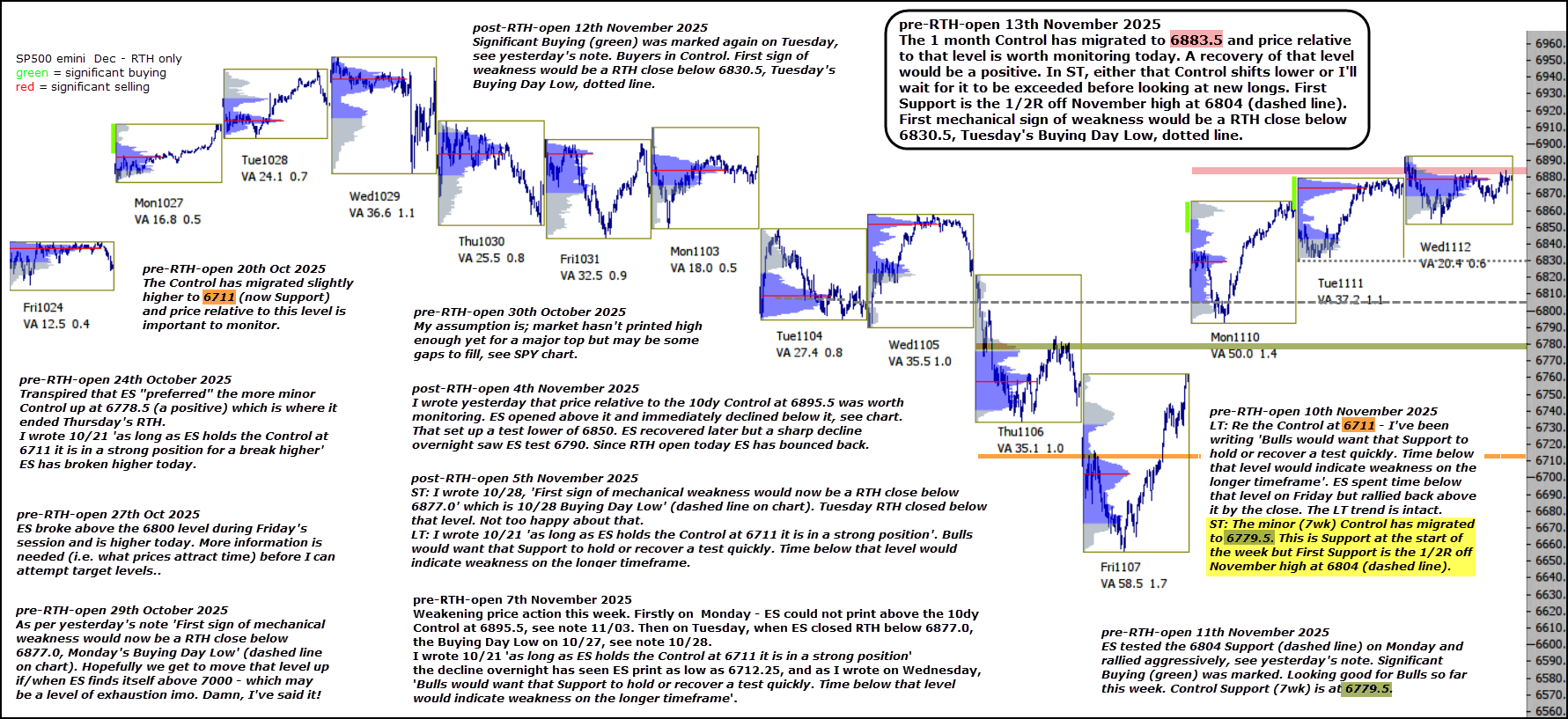 The 1 month Control has migrated to 6883.5 and price relative to that level is worth monitoring today. A recovery of that level would be a positive. In ST, either that Control shifts lower or I’ll wait for it to be exceeded before looking at new longs.