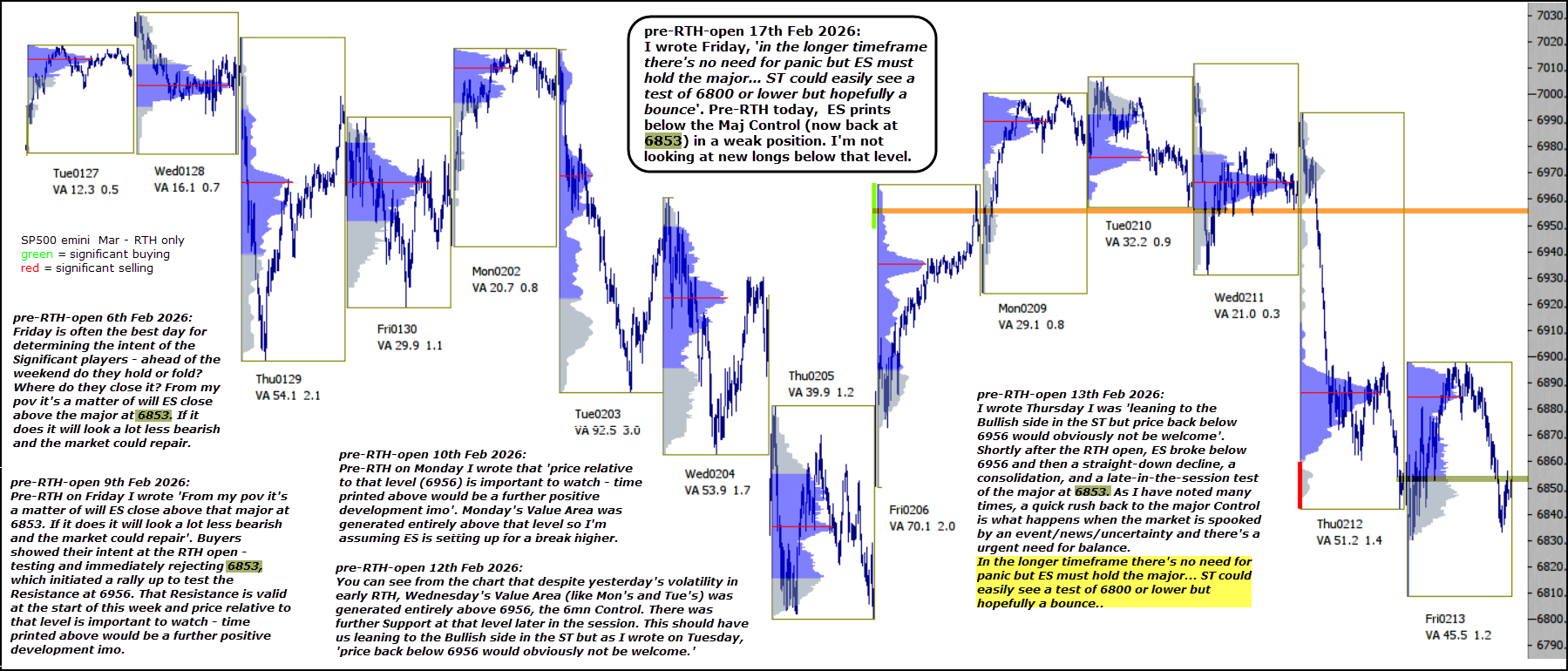 Pre-RTH today, ES prints below the Maj Control (now back at 6853) in a weak position. I’m not looking at new longs below that level.
