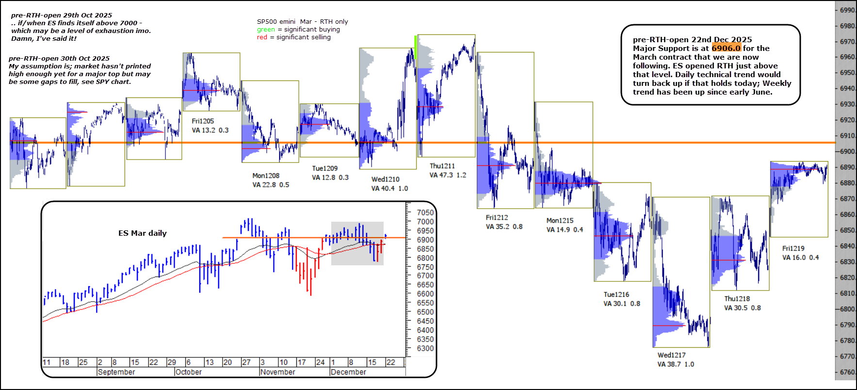Major Support is at 6906.0 for the March contract that we are now following. ES opened RTH just above that level. Daily technical trend would turn back up if that holds today; Weekly trend has been up since early June.