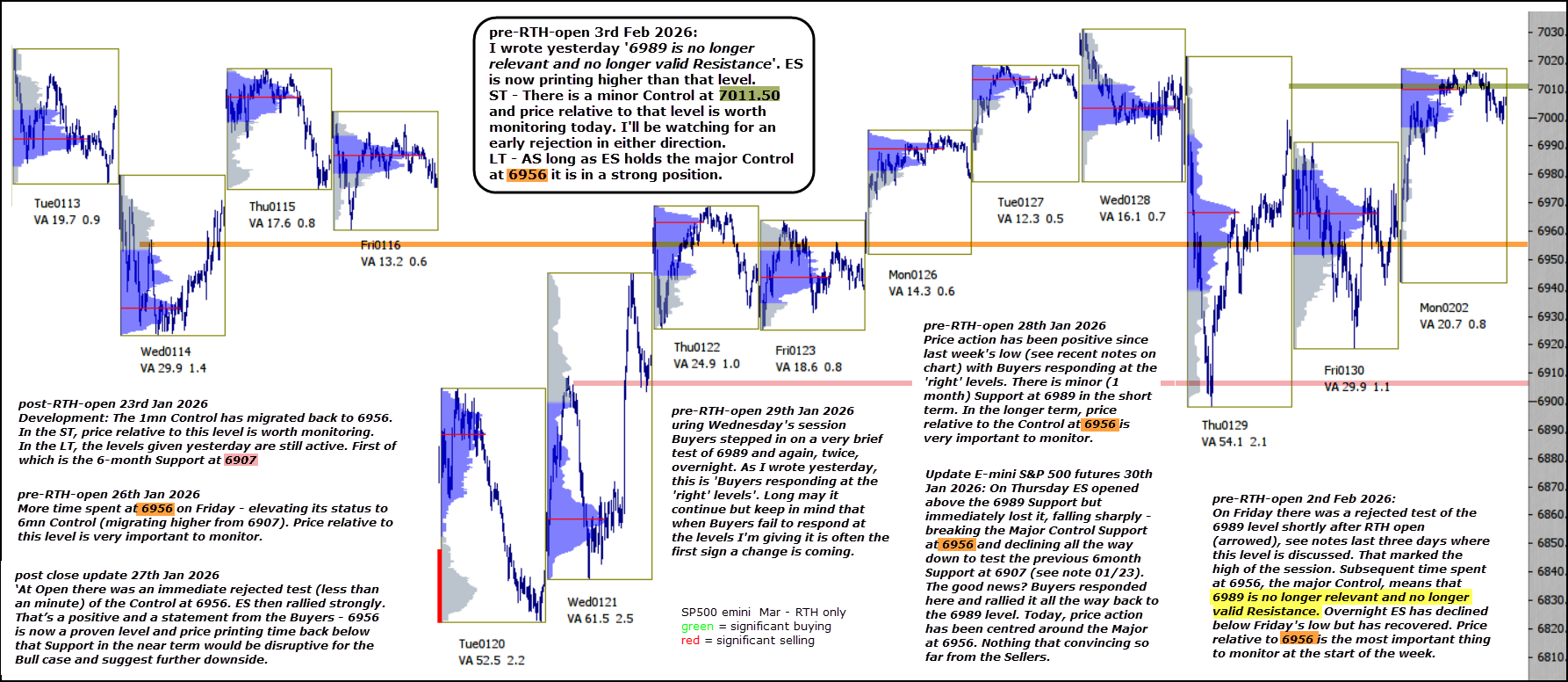 ST – There is a minor Control at 7011.50 and price relative to that level is worth monitoring today. I’ll be watching for an early rejection in either direction.