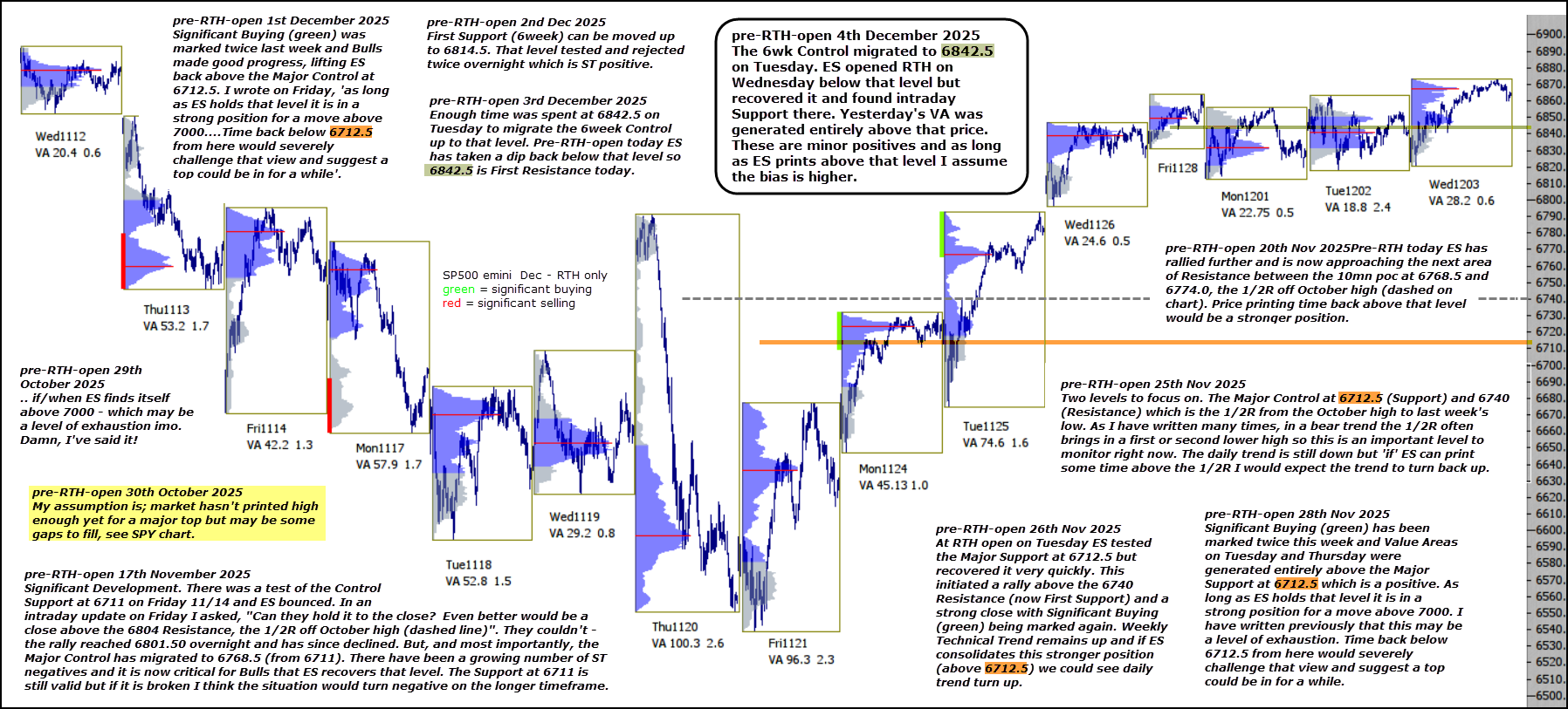The 6wk Control migrated to 6842.5 on Tuesday. ES opened RTH on Wednesday below that level but recovered it and found intraday Support there. Yesterday’s VA was generated entirely above that price. These are minor positives and as long as ES prints above that level I assume the bias is higher.