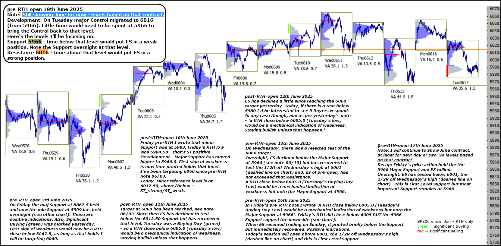 Support 5966 – time below that level would put ES in a weak position. Note the Support overnight at that level.