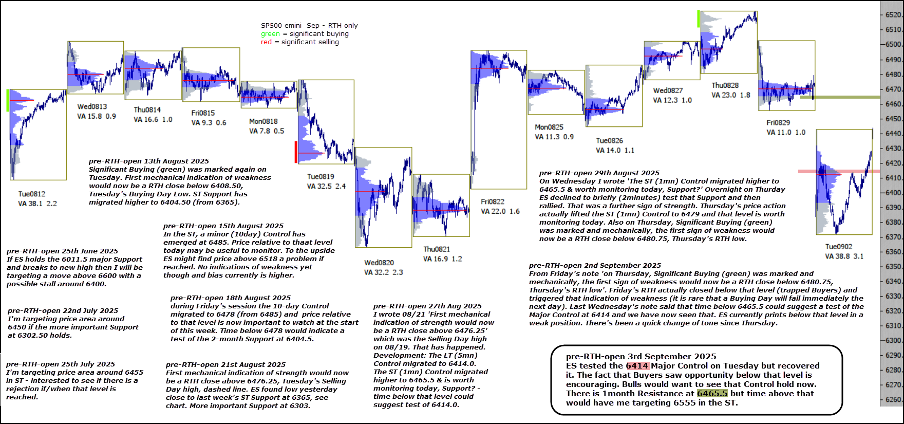 ES tested the 6414 Major Control on Tuesday but recovered it. The fact that Buyers saw opportunity below that level is encouraging. Bulls would want to see that Control hold now.