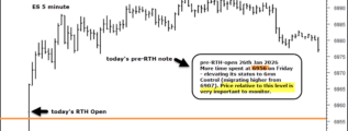 On Tuesday there was an early rejection of 7011.50. On Wednesday there was an early rejection of 6956. Both levels given pre-RTH, see arrows on chart and highlighted notes. That's not positive price action. BUT.. currently ES is printing just … [Continue reading]
